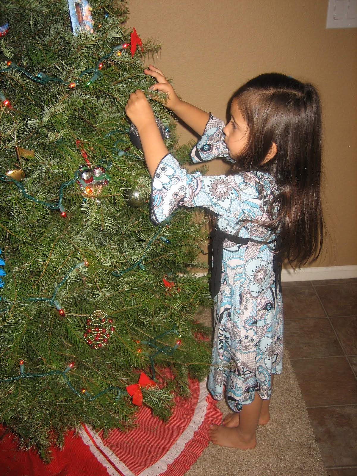 Our first REAL tree. And we found out a week later that Aftin is actually allergic to fir trees. Spencer was asleep for this, we thought it would be better that he wasn't up when little metal hooks and glass bulbs were everywhere.