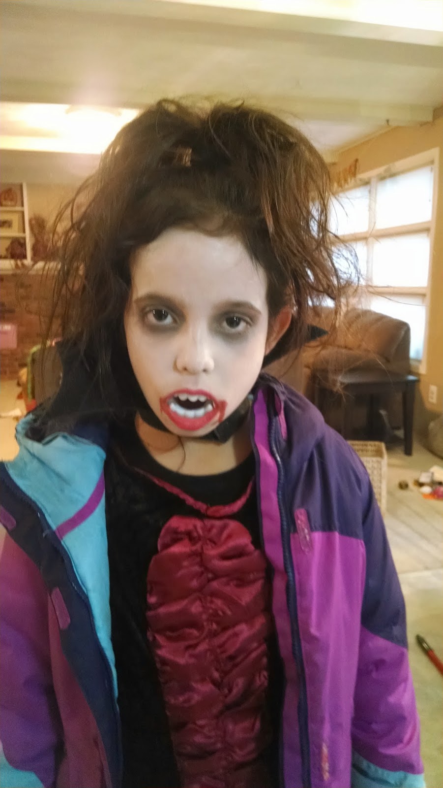 This is how we trick or treat in Michigan--all of the amazing costumes are covered in winter/rain coats and rain boots.